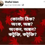 ♣ এসো শিখি …! কোনটা ঠিক …? করোনা ক্রান্তিকালে প্রতিদিন আমরা একটা শব্দের আধুনিক শুদ্ধ বানান শিখছি। ২০২০ সালের এপ্রিল থেকে যাত্রা শুরু। যারা এ যাত্রায় সাথে আছেন সবার জন্যে অনুপম শুভেচ্ছা। কতটা শেখা হলো, ১০০+ শব্দ, তা এই নিচের লিংকে পাবেন। ‘… এ জীবন আনন্দযাত্রা …!’ 🕊এসো শিখি …! কোনটা ঠিক …?https://www.facebook.com/notes/shafiul-islam/%E0%A6%8F%E0%A6%B8%E0%A7%8B-%E0%A6%B6%E0%A6%BF%E0%A6%96%E0%A6%BF-%E0%A6%95%E0%A7%8B%E0%A6%A8%E0%A6%9F%E0%A6%BE-%E0%A6%A0%E0%A6%BF%E0%A6%95-/3076481382410102/