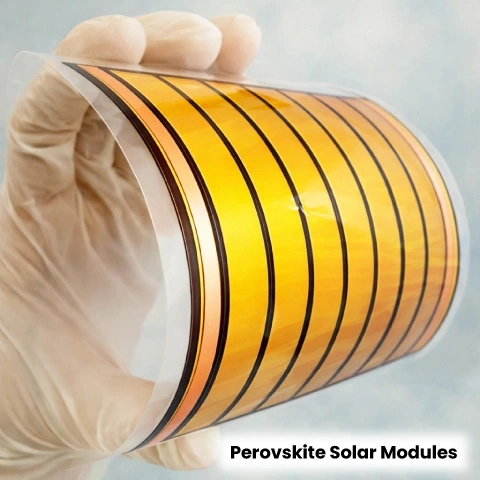 এমন সময় আবিষ্কৃত হলো এক চমৎকার উপাদান—পেরোভস্কাইট (Perovskite)। এটি এমন এক ধরনের স্ফটিক (Crystal), যা সূর্যের আলো খুব ভালোভাবে শোষণ করতে পারে। এর রসায়নও তুলনামূলক সহজ, আর সবচেয়ে গুরুত্বপূর্ণ বিষয় হলো—এটি তরল থেকে পাতলা স্তর (thin film) আকারে তৈরি করা যায়, অর্থাৎ বড় কারখানার প্রয়োজন হয় না।